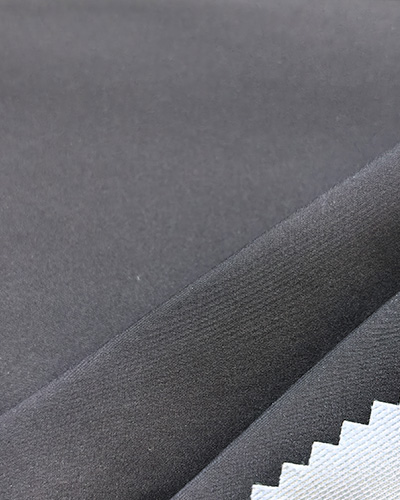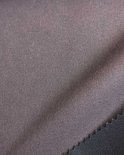 采用50D高F低弹纱线,布面具有丝绒感,背面贴合针织布,使整体面料轻盈有型,防水防风,是休闲风衣或夹克的经典选材