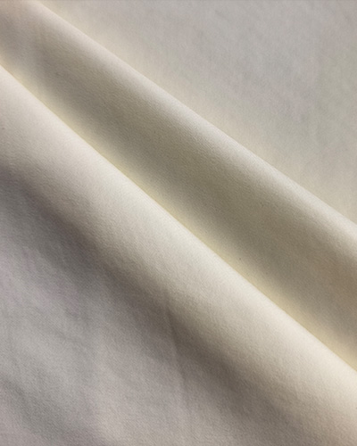 经向35D高F纱线,纬向50D高弹纱线,布面平纹组织,背面覆以20D可特,整体极致轻量化,微绒的高级触感,卓越的弹性,完美平衡了时尚外观,日常舒适与功能性,是都市轻户外夹克的优选材料